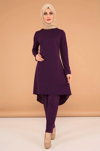 Incili Ikili Kombin 3556mor Modaebva - Tesettuer giyime uygun olarak oluşturulmuş iki veya daha fazla parcadan oluşan tesettuer giyim modellerindendir.