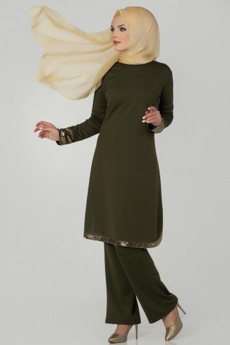 Varak Detayli Ikili Kombin 1980 Hakiyesil - Moda berfu tesettuerlue bayan modasi.